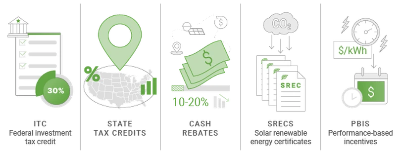 There are generous government incentives that exist to bring down that price and encourage more people to go solar. The most valuable one is the federal solar tax credit, also known as the investment tax credit (ITC), which credits you 30% of the cost of your solar panel system from your federal income taxes.